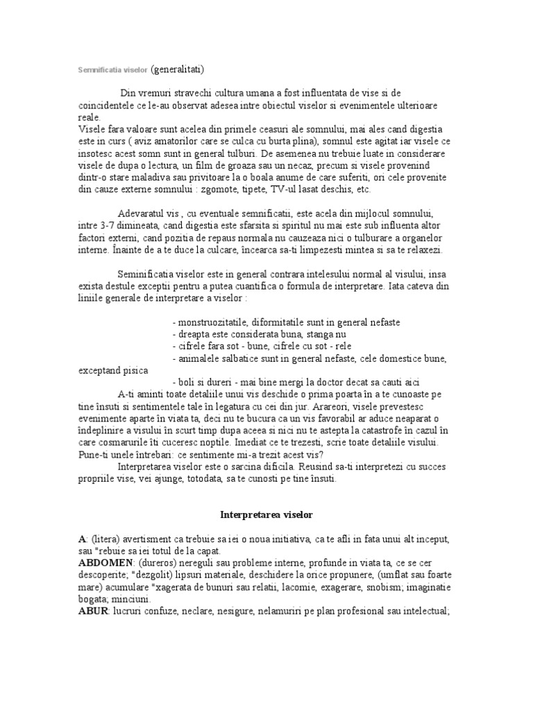 Dictionar De Vise De La A Z Semnificatia Viselor Yve Ro