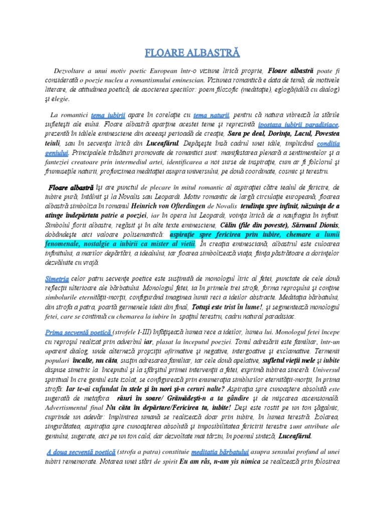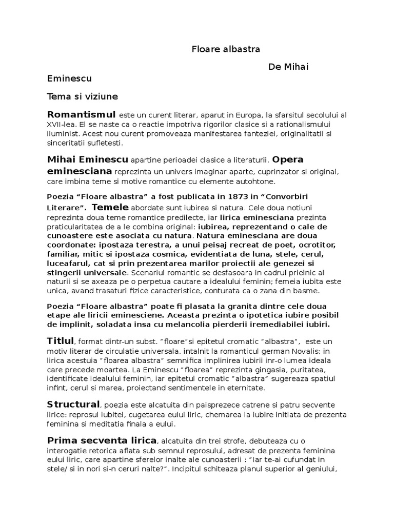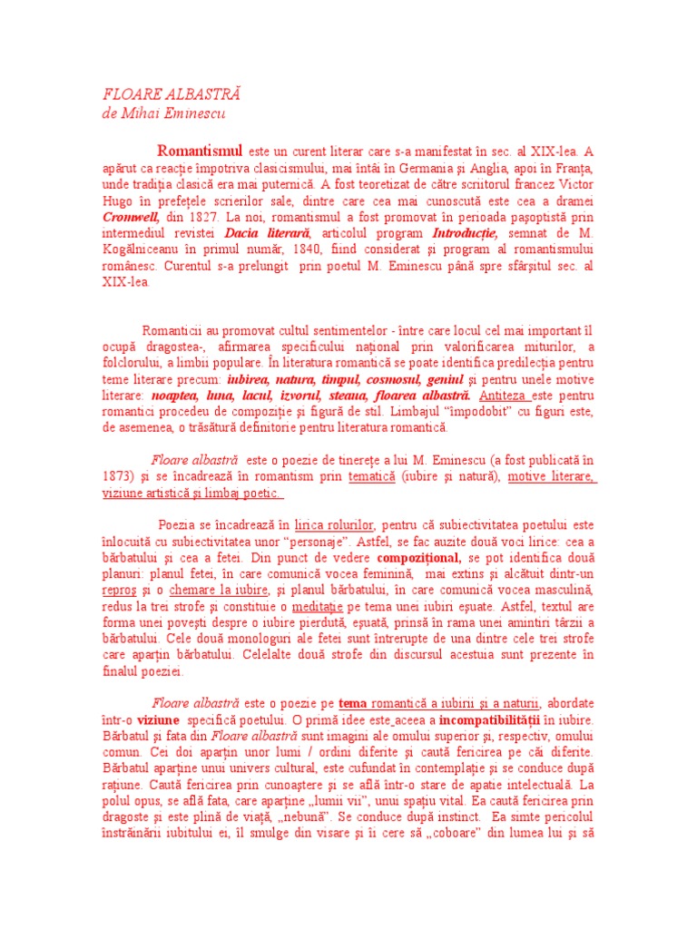 Doc Poezia Romantică Floare Albastră De Mihai Eminescu Andreea