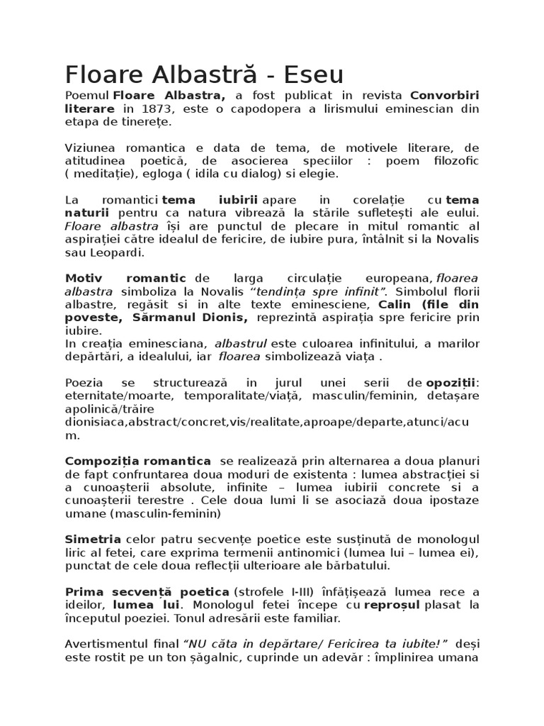 Floare Albastră Eseu