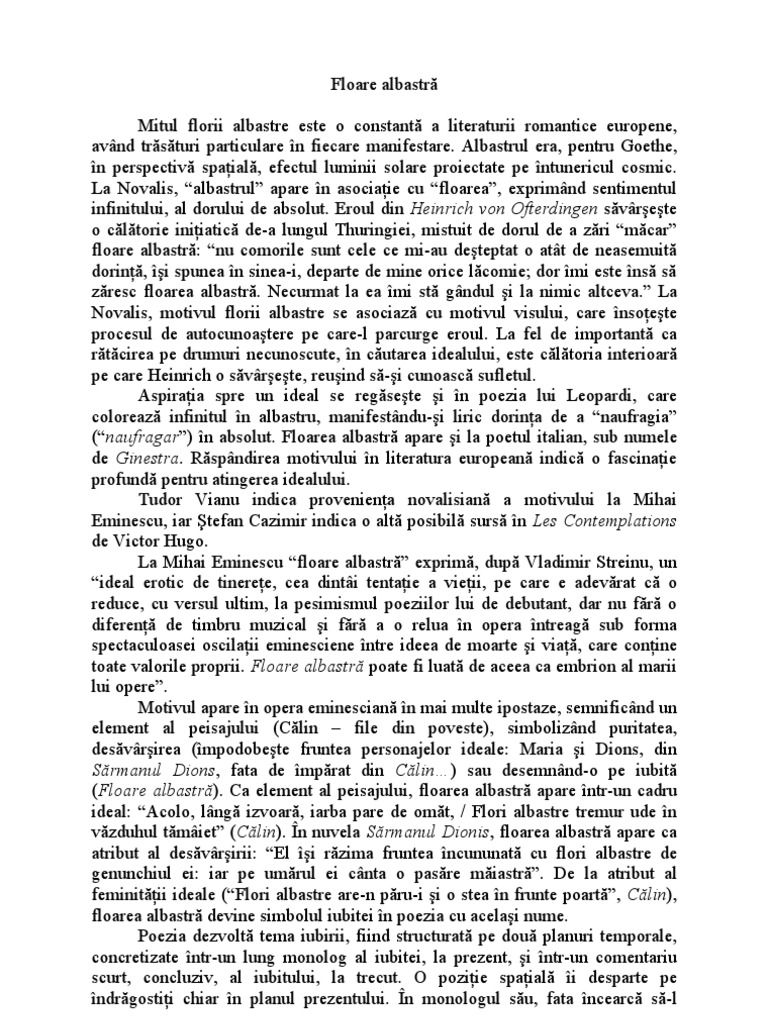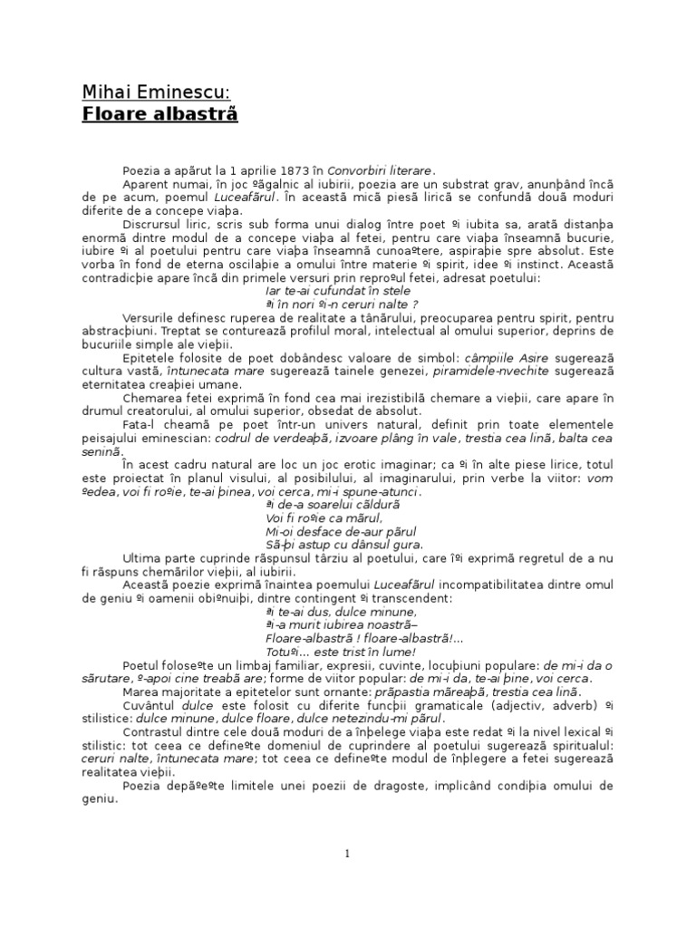 Floare Albastra De Mihai Eminescu Comentariu