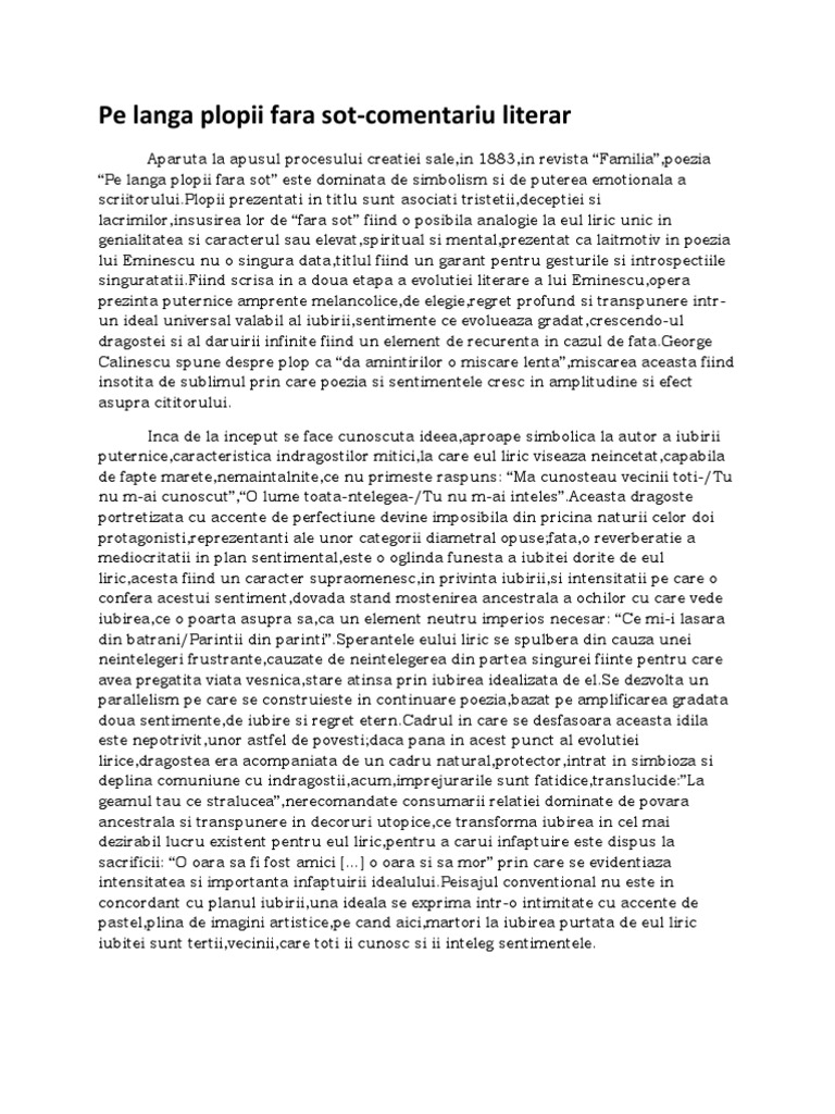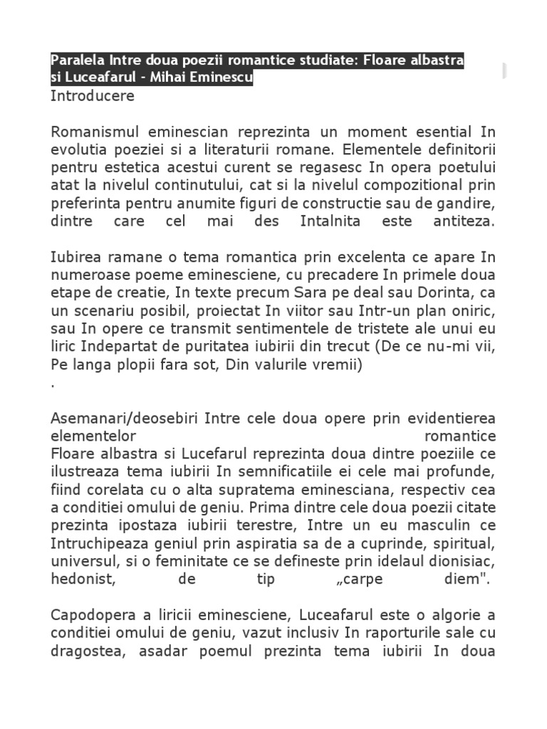 Referat Paralela Intre Floare Albastra Si Pe Langa Plopii Fara