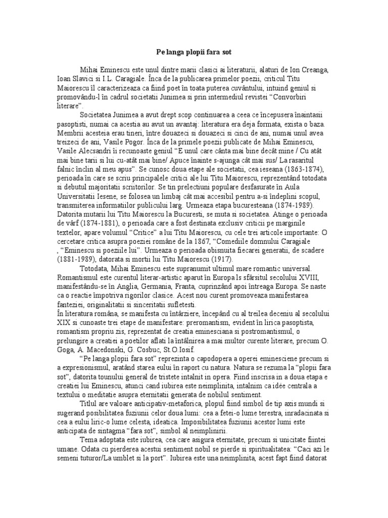 Pe Langa Plopii Fara Sot Mihai Eminescu Este Unul Dintre Marii Clasici