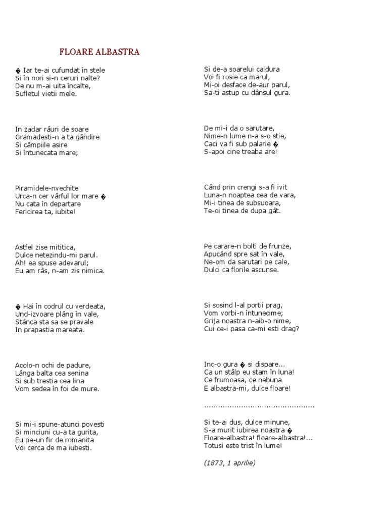 Floare Albastra M Eminescu Pdf